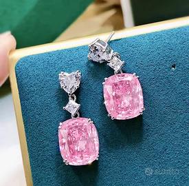 Bellissimi orecchini con pietra di colore rosa con cuoricino, chiusura con farfallina.