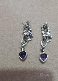 Orecchini d'argento con marcassiti e cuore viola. Anche questi orecchini fanno parte della mia collezione li ho acquistati in Thailandia. Nuovi. A causa della lavorazione non sono riuscita a vedere sul retro la scritta di entrambi gli orecchini la scritta 925 che è invece visibile sulle farfalline .