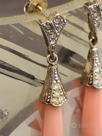 Incantevoli orecchini anni 60/70 realizzati in argento placcato oro e corallo rosa naturale. Eleganti e raffinati. Il punzone è presente sull'ago di un solo orecchino.
