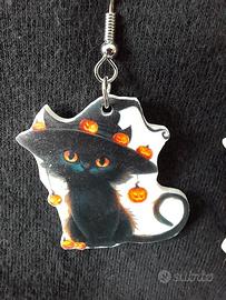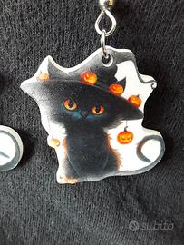 Orecchini a tema Halloweenesco raffiguranti gattini .