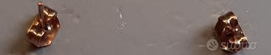 Orecchini a bottone rotondi in metallo color oro rosa con inserto in madreperla e zirconi, chiusura a farfalla. Leggero difetto del colore della madreperla su uno dei due (vedi foto 3). Circonferenza cm. 1,5.