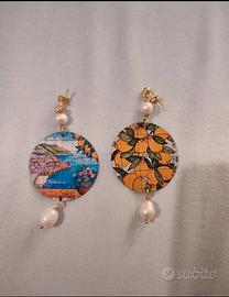 Orecchini con disegno della costiera amalfitana, Capri e i limoni di Sorrento FUORI PRODUZIONE!!!!!