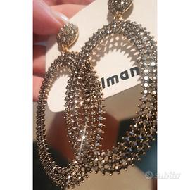 FANTASTICI orecchini Firmati Dolman in Cristalli. Indossati sono semplicemente stupendi!!! Nuovissimi con cartellino nella loro confezione originale che è una Pochette firmata Dolman. Prezzo originale 39. Svendo. Lunghezza circa 8,5. Chiusura a farfallina. Nel mio armadio altri gioielli e abiti bellissimi.
