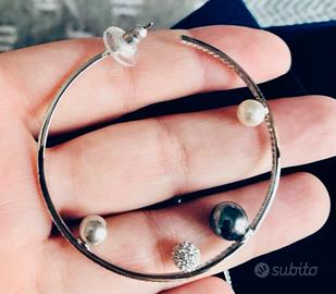 Orecchini donna a cerchio Swarovki con perle nuovi