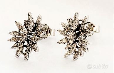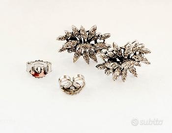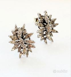 Orecchini pendenti da Donna a forma marquise , lavorati in Oro bianco 18kt 750/1000- Grammi 3,35 - con Diamanti bianchi naturali taglio brillante