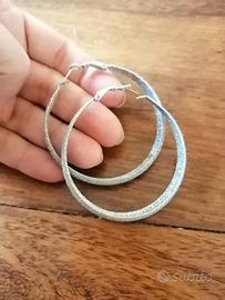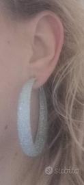 Orecchini a cerchio grandi grigio con glitter argentati
