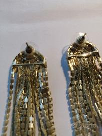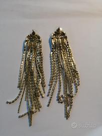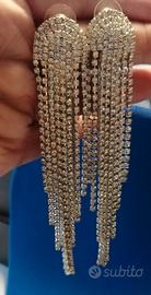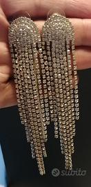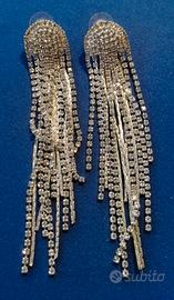 Orecchini donna lunghi, pendenti con strass a cascata, chiusura a perno