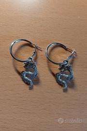 Orecchini donna rotondi con pendaglio a forma di drago.