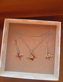 Orecchini e collana con farfalla abbinati argento nuovi mai utilizzati con scatola