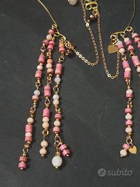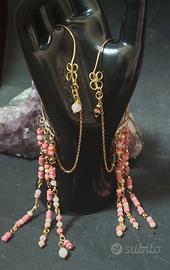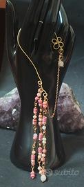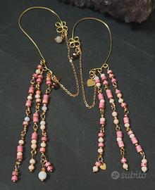 orecchini di moda ear cuff con pietre rosa e cristalli catenella acciaio dorata ottone cotto fatti a mano leggeri