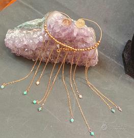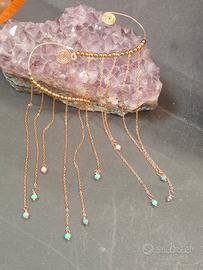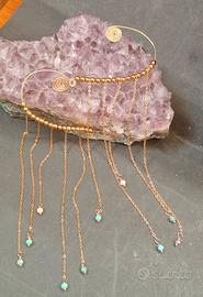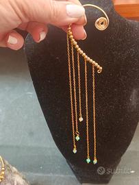 orecchini da mettere dietro l orecchio particolari,estrosi,originali, molto leggeri con perline di vetro e catenelle di acciaio,