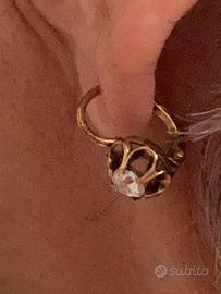 Orecchini della nonna pendenti in oro giallo 18k con due grossi brillanti bianchissimi caratura totale 0,50