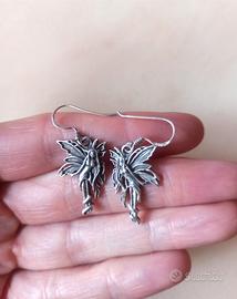 Orecchini pendenti in argento 925 a forma di fata, con finitura anticata per evidenziarne i dettagli. Lunghezza totale 3,5 cm. ⚠️Prezzo non trattabile.