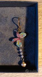 Orecchini in tiglio resinato, farfalla/fungo, con pietre dure, componenti galvanizzati oro 18KT