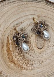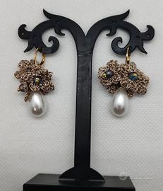 Orecchini fatti a mano. Fiorellini creati all' uncinetto e pendente perla. Monachella in acciaio color oro. Guarda il mio profilo per altri articoli di questo genere.