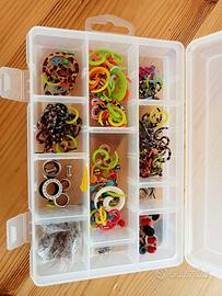 scatola di orecchini in plastica,alcuni in metallo,nuovi mai usati.