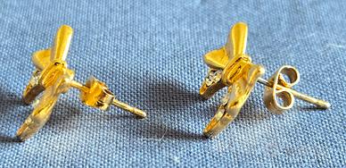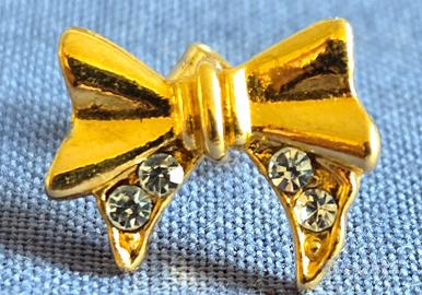 Orecchini dorati a forma di fiocchetto con 4 luminosi brillantini bianchi per fiocco.