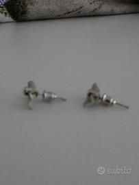 Orecchini color argento a forma di fiocco.