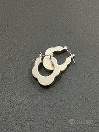 Delicati orecchini a cerchio color argento con elegante design floreale e finitura martellata, che conferisce un look artigianale e moderno. Perfetti per aggiungere un tocco luminoso e femminile a qualsiasi outfit.