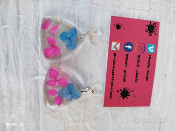 Orecchini in Resina con Fiori Secchi - Realizzati a Mano Scopri la bellezza della natura con i nostri eleganti orecchini in resina, arricchiti da delicati fiori secchi, realizzati a mano con passione e attenzione ai dettagli. Questi orecchini unici sono un perfetto connubio tra arte e natura, ideali per chi desidera indossare accessori esclusivi e originali. Caratteristiche: - Design Unico: Ogni paio di orecchini presenta un design esclusivo, con fiori secchi incastonati nella resina trasparente, che catturano e riflettono la luce in modo incantevole. - Materiale di Qualità: Realizzati in resina di alta qualità, garantiscono durata e resistenza. La resina è leggera e confortevole da indossare, rendendo questi orecchini perfetti per l’uso quotidiano. - Realizzati a Mano: Ogni pezzo è realizzato artigianalmente, il che significa che ogni orecchino è unico nel suo genere. Le variazioni nei fiori e nel design rendono ogni paio di orecchini davvero speciale. - Versatilità: Perfetti per ogni occasione, questi orecchini possono essere indossati con outfit casual o eleganti, aggiungendo un tocco di freschezza e raffinatezza al tuo stile. - Regalo Ideale: Questi orecchini sono un regalo perfetto per compleanni, anniversari o semplicemente per sorprendere una persona speciale con un pensiero unico e significativo. Aggiungi un tocco di natura al tuo look con questi splendidi orecchini in resina!