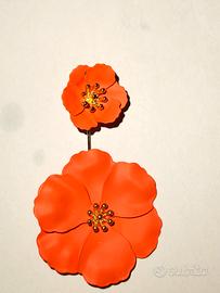 Orecchini Flower Drop Maxi Fiori Arancio Corallo