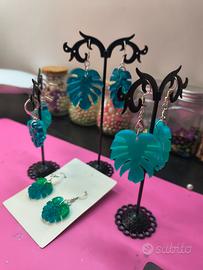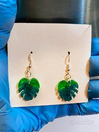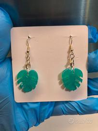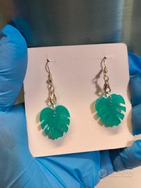 Orecchini foglie Monstera teal,bellissimi orecchini a forma di foglia di Monstera. Sono due e hanno un colore verde acqua molto particolare. Sono perfetti per aggiungere un tocco tropicale al tuo look! - Realizzati con cura - Design unico - Leggeri e comodi da indossare