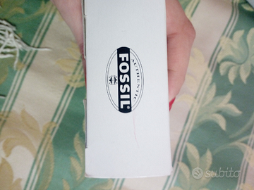 Coppia di orecchini fossil, mai utilizzati e dotati di scatola, pendenti con brillantino