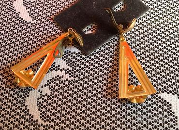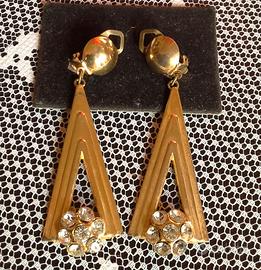 Orecchini vintage di buona bigiotteria stile Art Deco, di forma triangolare allungata con strass sulla parte finale. Con clip, non occorre avere orecchi forati. Perfetti sia davanti che dietro. Lunghezza 6,5 cm.
