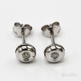 Orecchini G U L V I N in oro bianco 18 kt grammi 1,5 tipo punto luce con Diamante taglio brillante di ct 0,08 colore F vs. Prodotto made in Italy munito di marchio di fabbrica come da legge e completo di confezione e certificato di qualità rilasciato dalla Gioielleria.