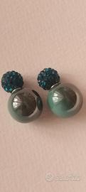 Orecchini double face colore verde cangiante e strass