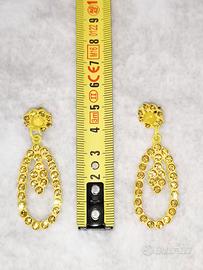 Orecchini gialli rotoindi con brillantini.