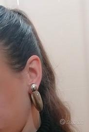 Orecchini di acciaio e resina, effetto marmorizzato. Molto particolari. Mi sono stati regalati, ma non mi è possibile portarli, sono allergica. Prezzo di listino: 120 euro.