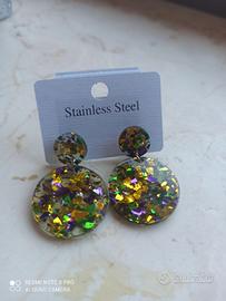 Orecchini pendenti con glitter colorati. - Design rotondo. - Materiale: Stainless Steel.(Acciao) - Orecchini in plastica