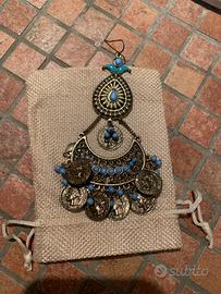 Orecchini grandi bigiotteria pendenti "Stradivarius" ottone e celeste