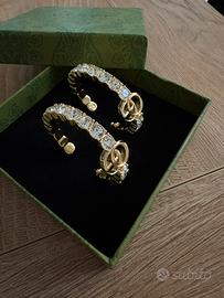 Orecchini color oro con logo Gucci GG. Design elegante e raffinato, perfetti sia per outfit quotidiani che per occasioni speciali.