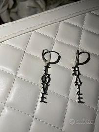 Coppia di orecchini in bigiotteria dal design gotico e grintoso, perfetti per chi ama accessori che parlano da soli. Ogni orecchino presenta una charm verticale in metallo lucido con lettere in stile old English, creando un look incisivo e pieno di personalità. La chiusura a cerchietto assicura praticità e comodità, mentre il pendente sottile dona un movimento elegante ma con un tocco ribelle.