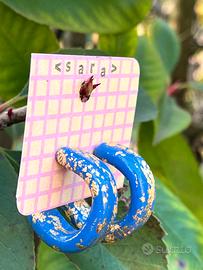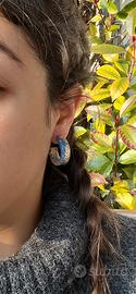Orecchini realizzati interamente a mano ad anello, in pasta polimerica e foglia d’oro, finitura lucida con chiusura a farfalla