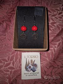 Bellissimi orecchini a lobo della marca IL TORNIO. Sono caratterizzati da una perla rossa e un ciondolo a forma di albero della vita.Perfetti per aggiungere un tocco di stile al tuo look. - Venduti in confezione originale.