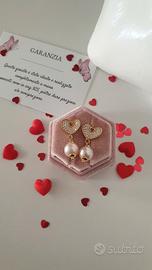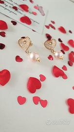 ▪️Coppia di orecchini realizzati a mano con perno a cuore in zirconi bianchi e due meravigliose perle di fiume dal colore rose'.
