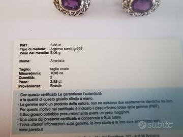 Orecchini in argento 925 con Ametista come nuovi con certificato di autenticità
