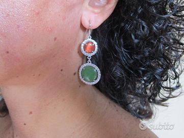 Orecchini pendenti in Argento 925 rodiato anallergico, senza nickel, chiusura a farfallina, con Cristalli naturali colorati