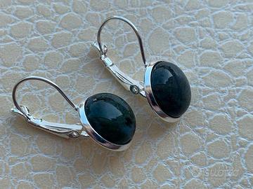 Orecchini artigianali a leva francese in Argento 925 timbrato e Agata Verde naturale.