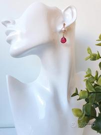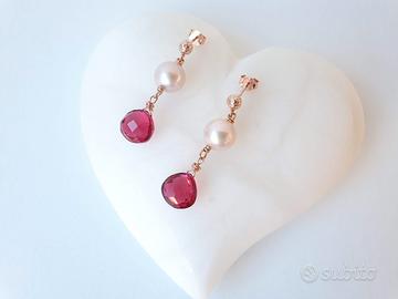 • ORECCHINI PENDENTI con pietre dure e perle di acqua di fiume rosate.