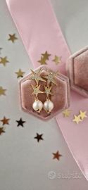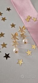▪️Coppia di orecchini realizzati a mano con perno a stelle in zirconi bianchi e meravigliose perle di fiume.
