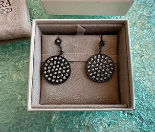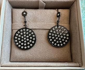 Orecchini in argento 925 con pendente tondo, finitura rodiata nera e sfere diamantate, rotanti.
