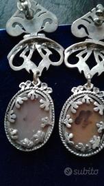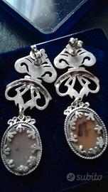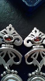 splendidi orecchini in Argento 925, con 2 Camei realizzati su conchiglia artigianalmente, sono snodati per un movimento ,,,, unici,, inoltre anno 2 Granati bellissimi che gli danno luce,