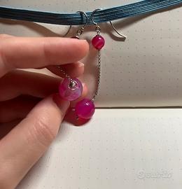 Orecchini artigianali in Argento 925, con 4 sfere in agata rosa. Purtroppo una delle sfere presenta un difetto, visibile in fotografia.