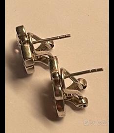 Coppia di orecchini in argento per orecchie col buco più Clips di sicurezza.argento massiccio e pietre colorate rosa azzurre e bianche