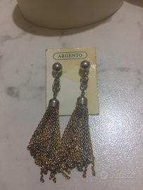 Due paia di orecchini in argento 925, il primo paio con piccole pietre, il secondo con catenelle dei tre colori dell'argento, bianco, rosso e giallo. Vendo il primo a 15,00 e il secondo paio a 20,00, se presi entrambi a 30,00.