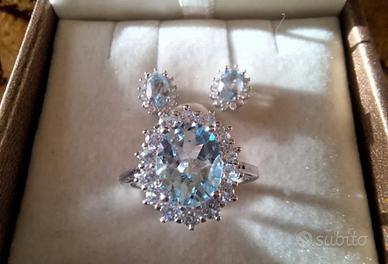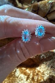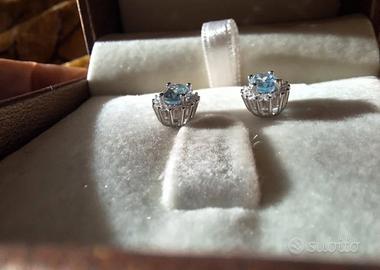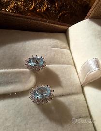 Orecchini a bottone in argento massiccio sterling 925, di mm.9 ,con topazio naturale azzurro di ct.1,05 (mm.6x4), taglio ovale,origine Brasile e 28 zirconi bianchi. Nuovi con confezione e certificato di autenticita'. Gia' scontati.Prezzo normale di vendita € 109.